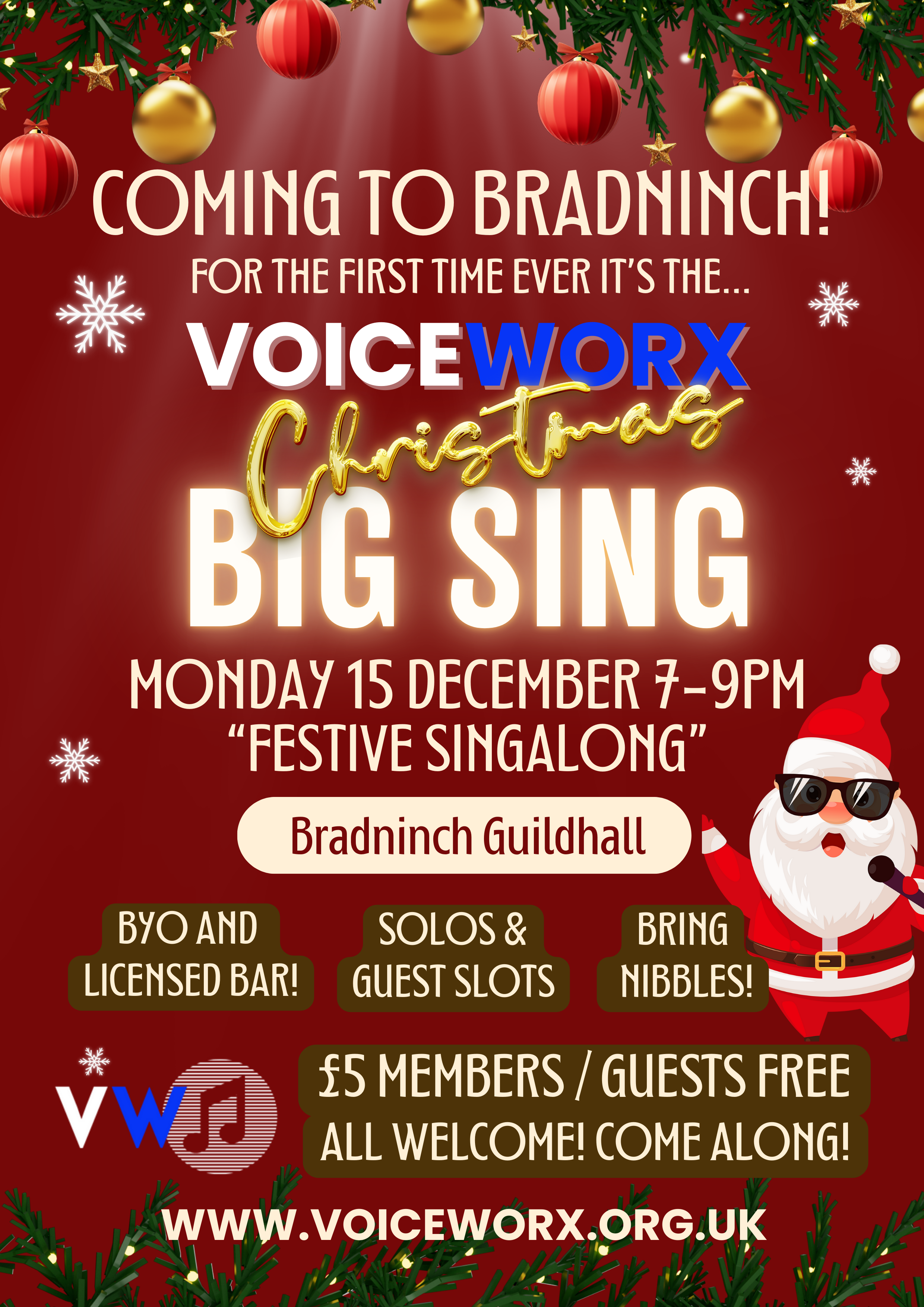 Free to guests*! Coming to Bradninch for the first time... our Big Christmas Sing! A fabulous, informal, festive singalong for everyone. Plus fab, local solo singers and instrumentalists, a short, music-themed quiz! What more could you ask for?!